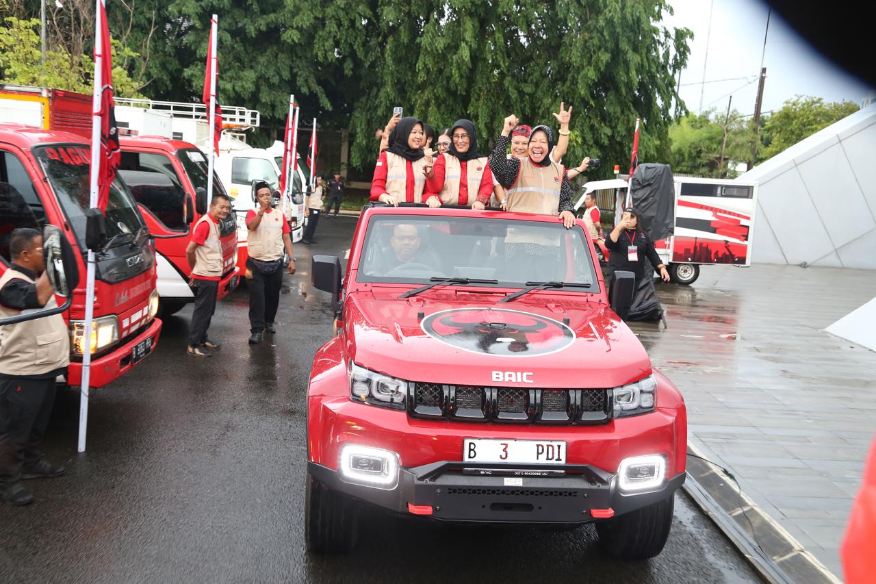 Dalam kegiatan tersebut, Risma bersama Ketua DPP PDI Perjuangan Ribka Tjiptaning meninjau langsung anggota dan relawan Baguna dengan puluhan unit ambulans yang siap diberangkatkan ke wilayah terdampak bencana, termasuk di Sumatra.