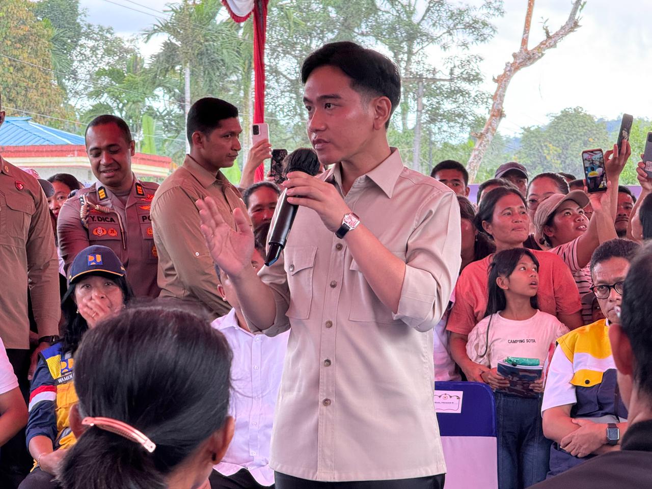 Wakil Presiden Gibran Rakabuming Raka menyampaikan pesan solidaritas kepada masyarakat Sumatera Utara menjelang perayaan Natal 2025. Pesan ini disampaikan Gibran di tengah kunjungan kerjanya ke Pulau Nias. Foto Sekretariat Wapres