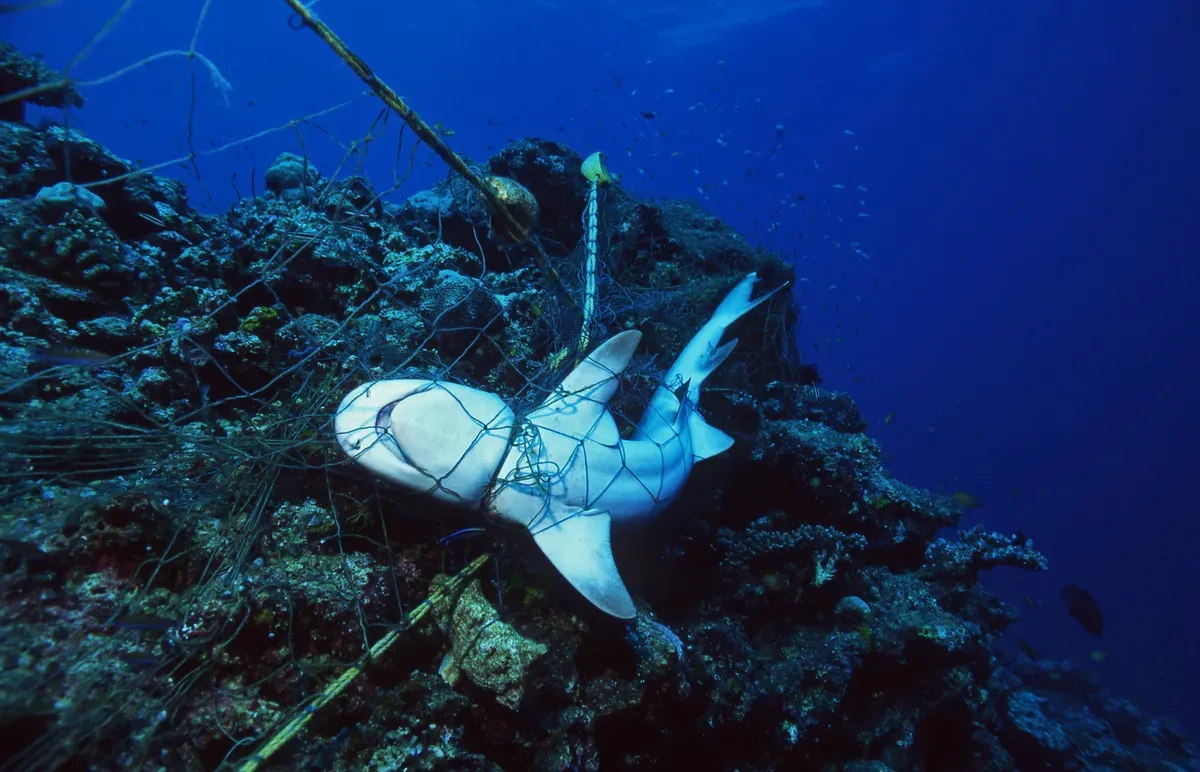 Foto: ifl science (VisionDive/Shutterstock.com) Hiu mati tersangkut jaring ikan