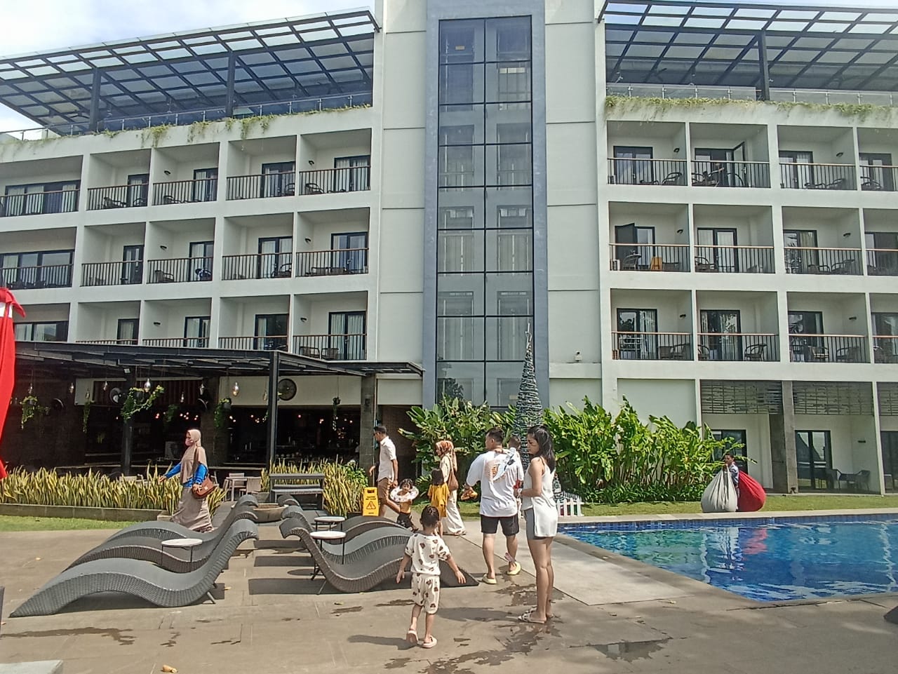 Wisatawan menikmati liburan di Aston Anyer Beach Hotel. (Tvrijakartanews/ John Abimanyu)