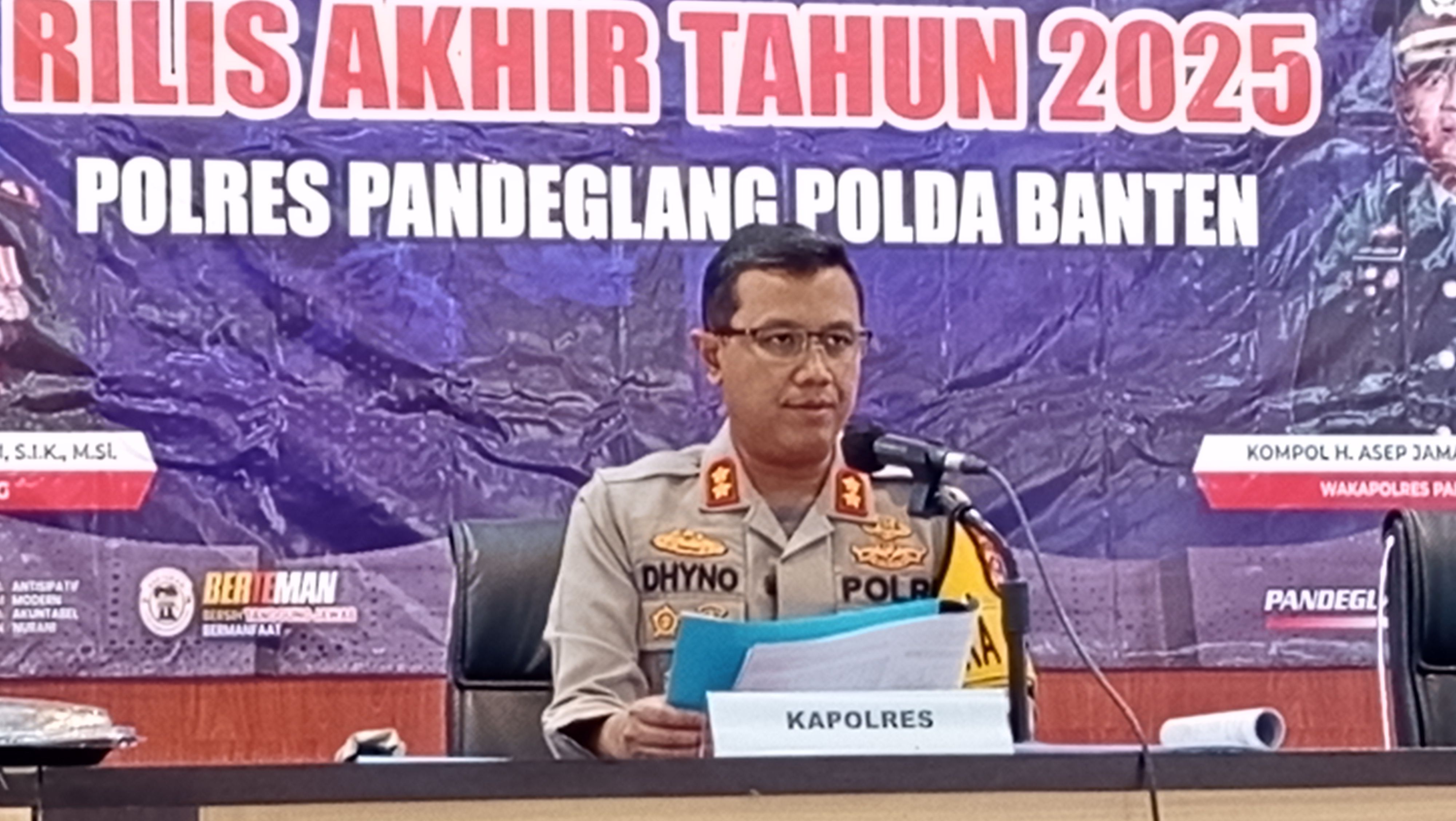 Kapolres Pandeglang, AKBP Dhyno Indra Setyadi mengatakan Jumlah tersebut menurun sekitar 5,25 persen atau sekitar 25 tindak pidana jika dibanding tahun 2024 lalu sebanyak 578 Tindak Pidana.