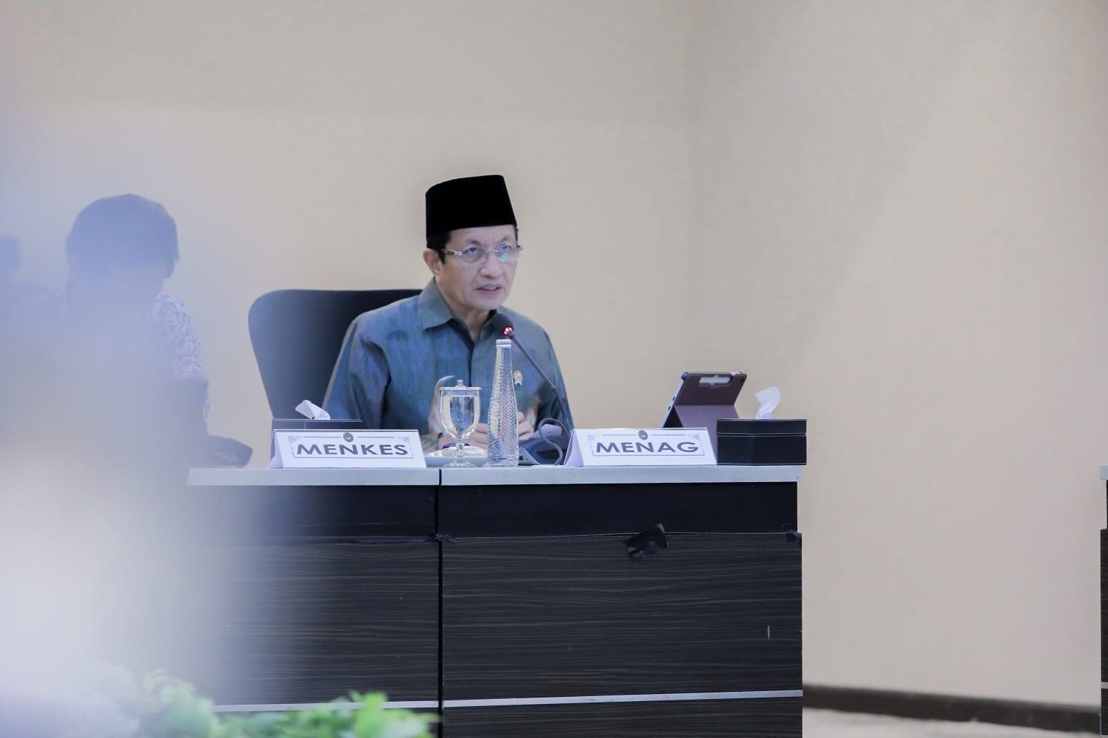 Menteri Agama (Menag) Nasaruddin Umar dalam rapat koordinasi tingkat menteri yang digelar di Kementerian Koordinator Pembangunan Manusia dan Kebudayaan (Menko PMK), Jakarta, Jumat (2/1). Foto : Istimewa/ Kemenag