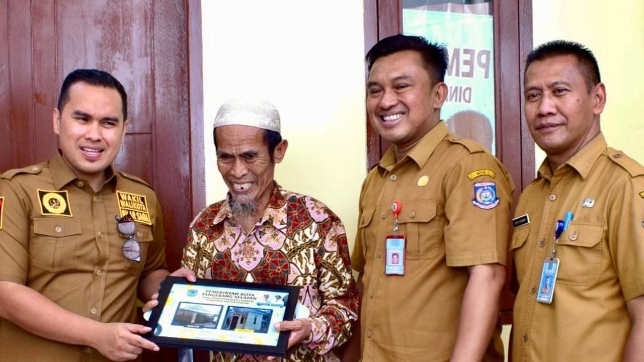 Wakil Wali Kota Pilar Saga Ichsan (Kiri) Bersama Kepala Disperkimta Tangsel, Aries Kurniawan (Kedua Kanan) Menyerahkan Hasil Bedah Rumah ke Warga