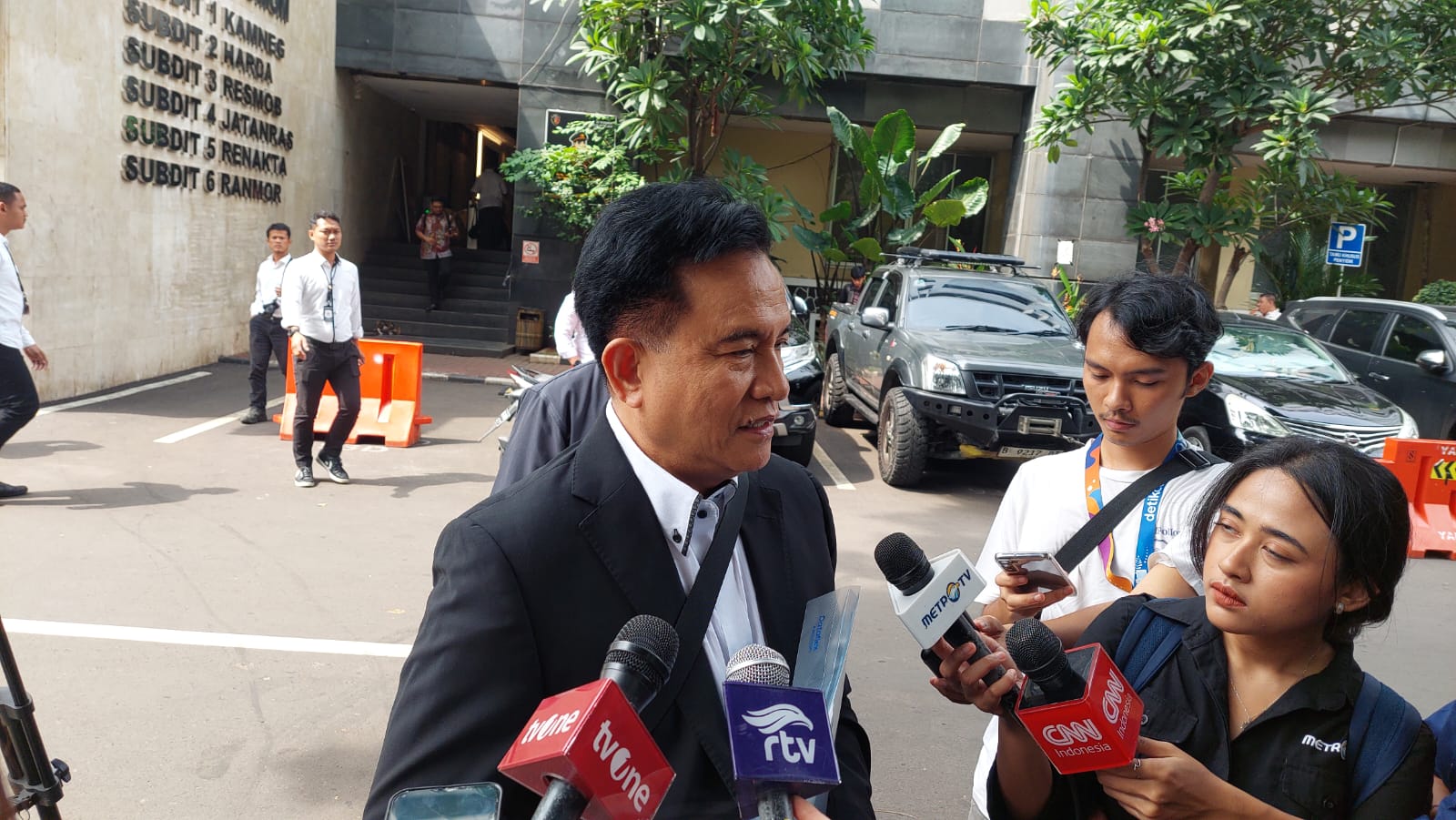 Bedasarkan pantauan di lokasi, Yusril tiba pada pukul 10.37 WIB. Dia mengenakan jas hitam dengan dalaman kemeja berwarna putih.