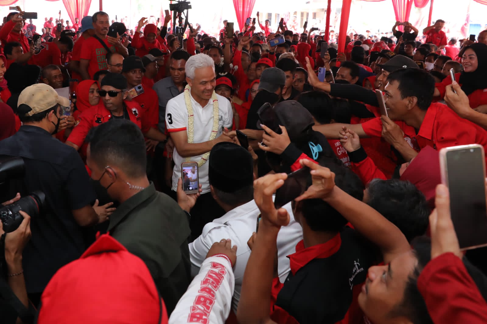 Dalam pidatonya, Ganjar mengobarkan semangat pendukung untuk memenangkan kontestasi politik 2024. Ia menekankan bahwa pendukung Ganjar-Mahfud bukan penakut dan siap berkeringat untuk rakyat.