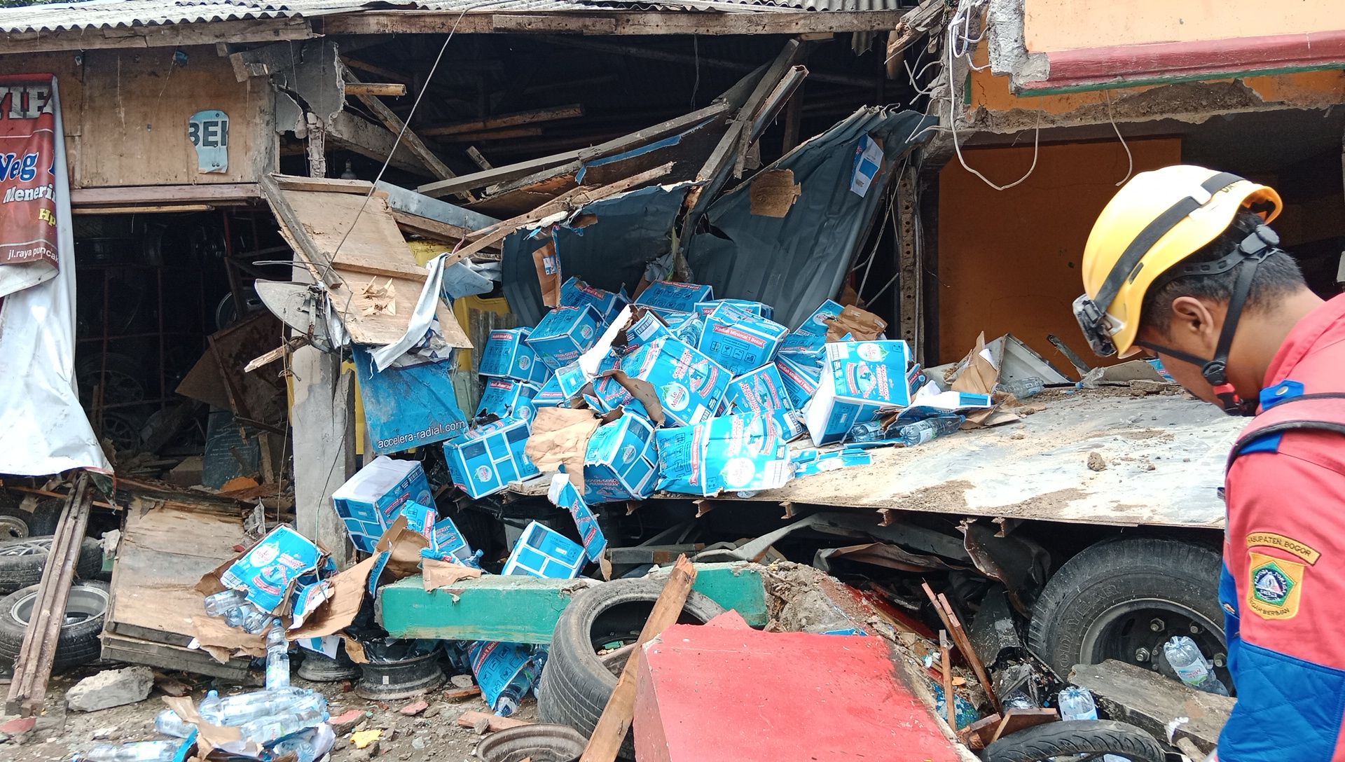 Selain kendaraan, terdapat juga dua bangunan yang hancur. Yakni, bangunan rumah makan dan bengkel ban.