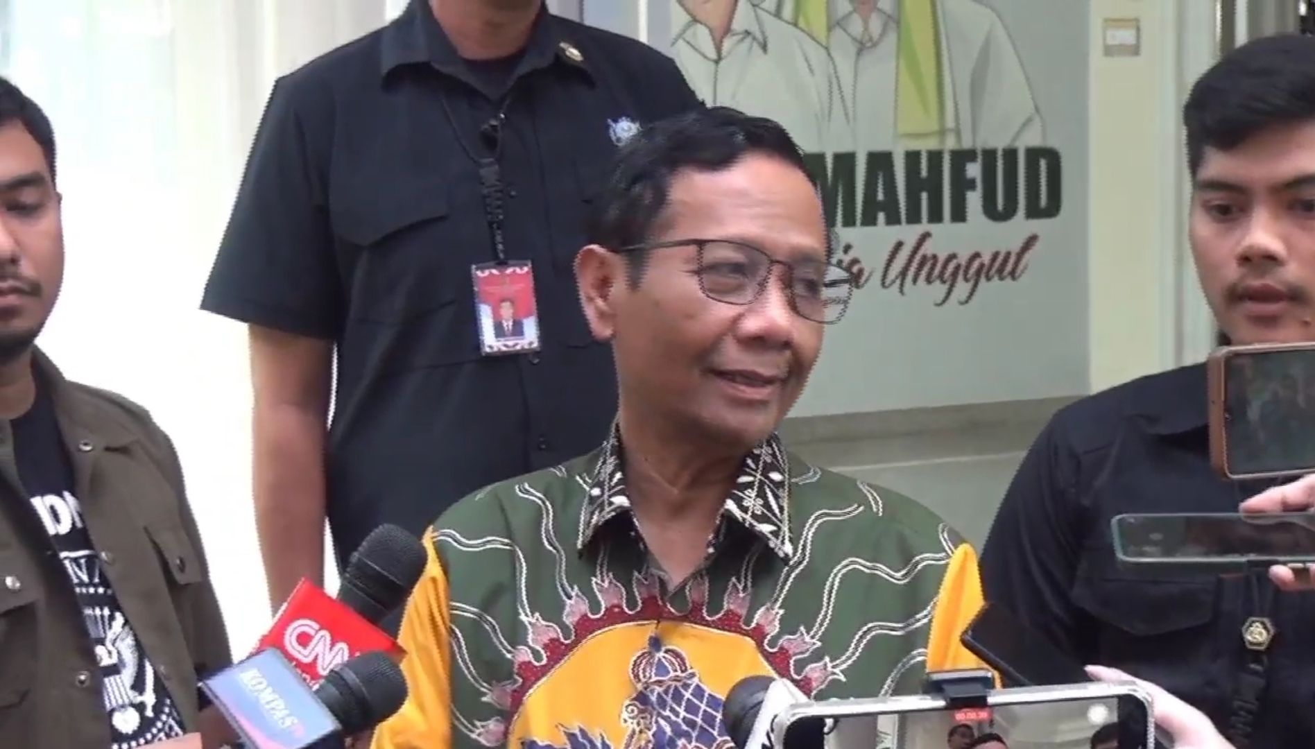 Calon wakil presiden nomor urut 03, Mahfud MD saat memberi keterangan kepada awak media di Teuku Umar, Jakarta Pusat. (23/01/2024)