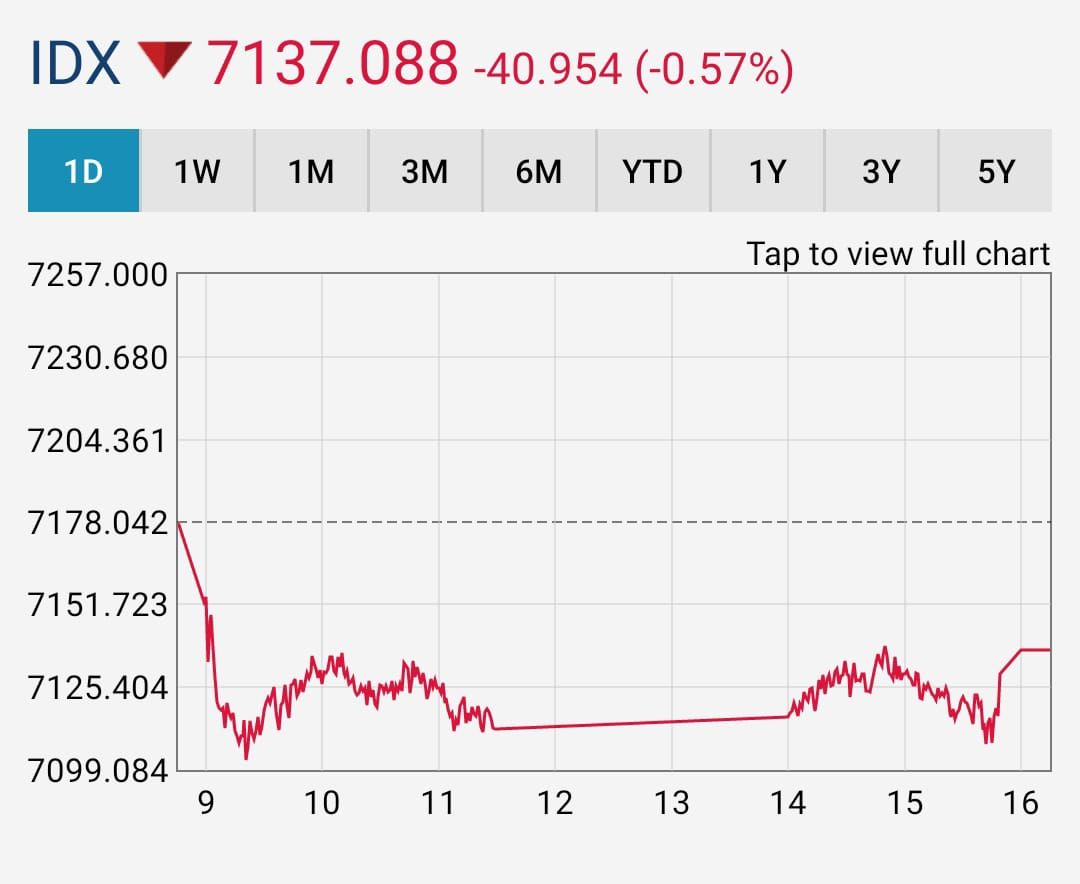 Sementara itu, Indeks Harga Saham Gabungan (IHSG) pada pekan ini mengalami penurunan sebesar 1,25 persen, ditutup berada pada posisi 7.137,088 dari 7.227,402 pada penutupan pekan lalu.