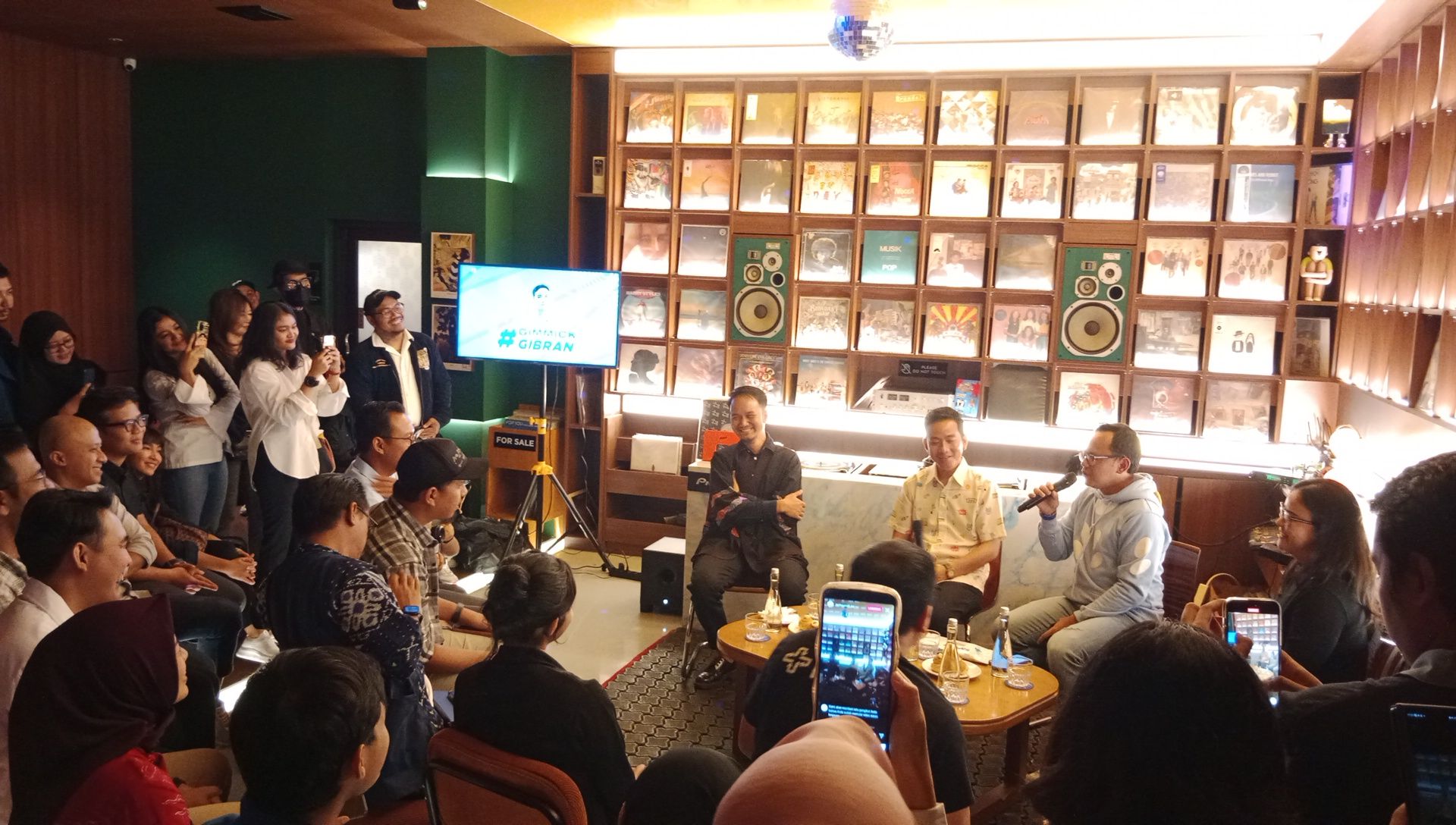 Calon Wakil Presiden (Cawapres) nomor Urut 2, Gibra Rakabuming Raka menghadiri diskusi bersama para pelaku industri kreatif serta komunitas anak muda, di Samsara Cafe, Bogor Tengah, Kota Bogor, pada Rabu 31 Januari 2024 sore / Foto: Dimas Yuga Pratama