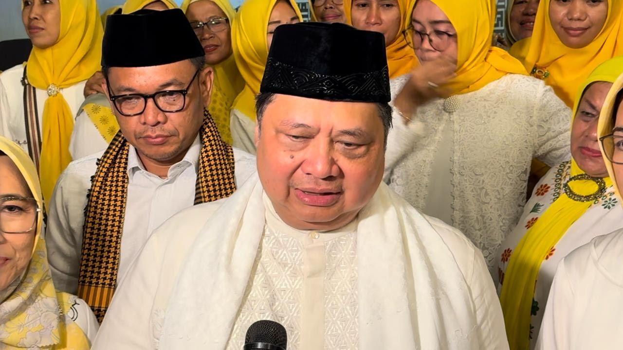 Dalam sambutannya, Airlangga berpesan ke ratusan ibu-ibu yang hadir untuk menjadikan ibadah nomor satu.