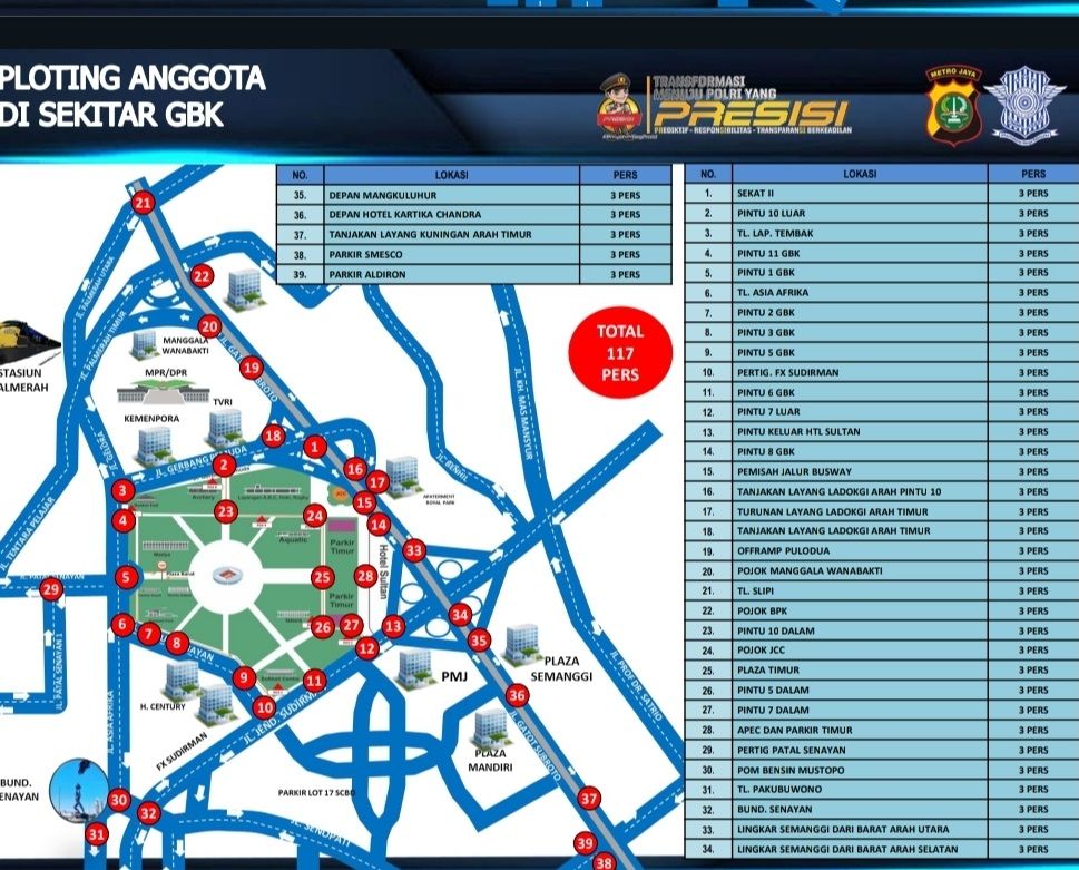 Kemudian untuk lokasi parkir, Latif menjelaskan pihaknya telah menyiapkan sebanyak dua lokasi kantong parkir, di dalam dan di sekitar kawasan GBK.