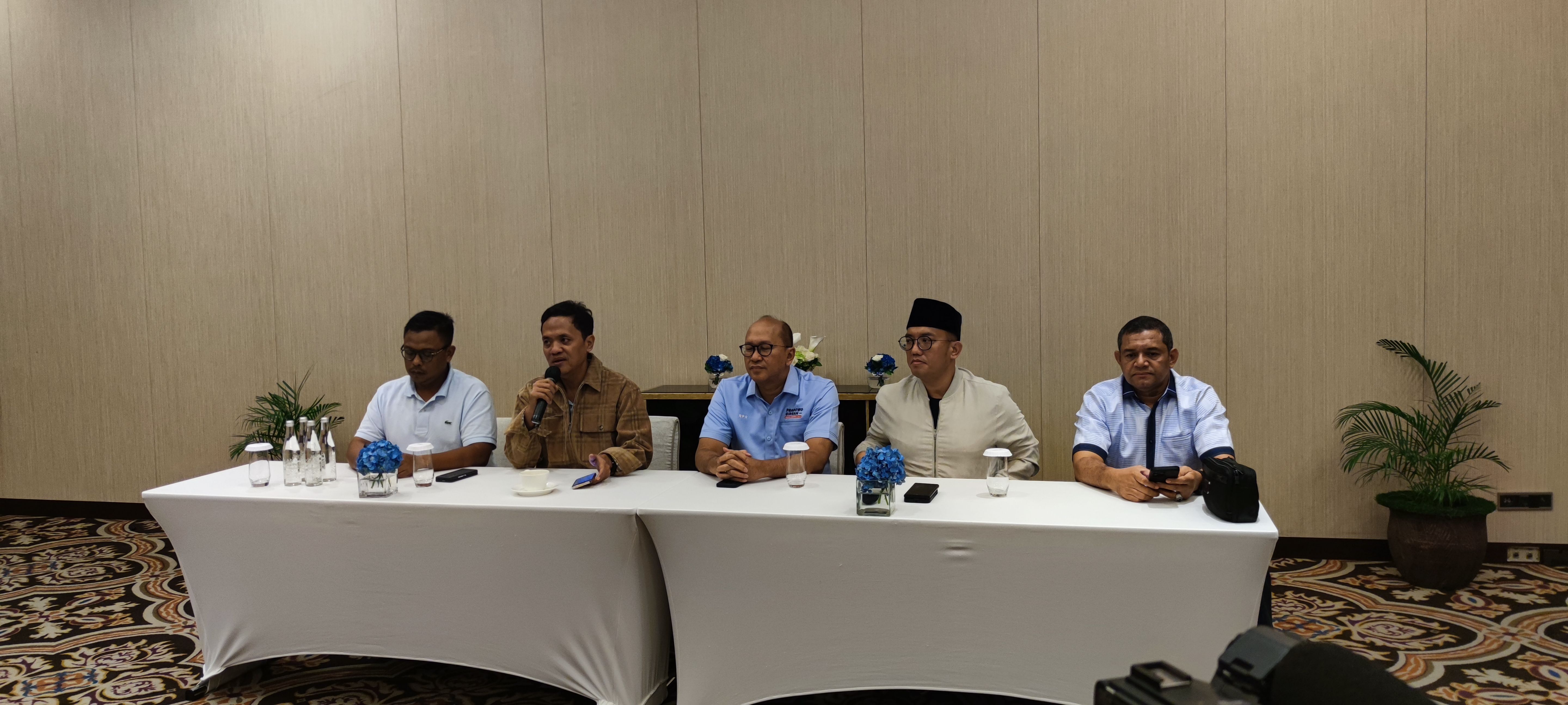 TKN saat melakukan konferensi pers mengenai pemberitaan kasus korupsi pembelian pesawat tempur Mirage 2000-5 dari Qatar oleh Menhan Prabowo Subianto. Foto M Julnis Firmansyah