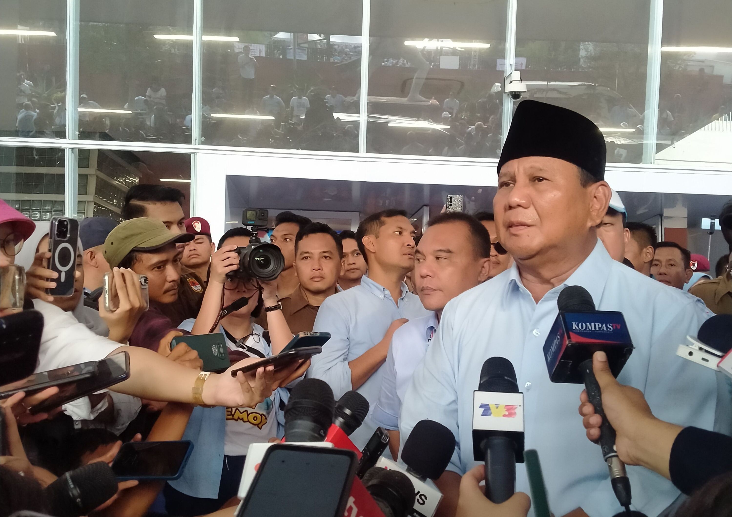 Calon presiden Prabowo Subianto menemui wartawan usai melakukan Kampanye Akbar di GBK, Sabtu (10/2/2024). (Foto: Isty/tvrijakartanews.com)