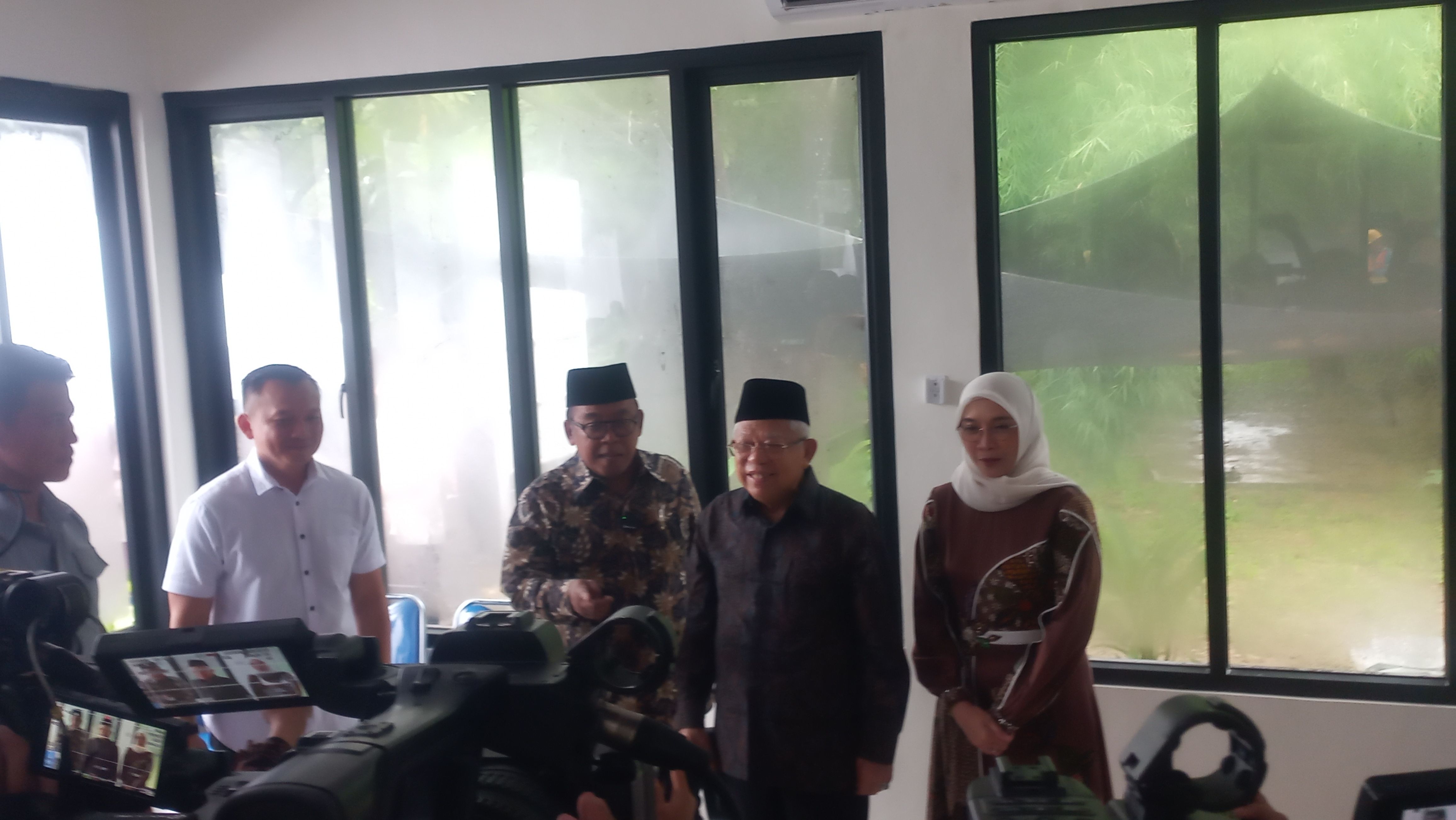 Ma'ruf dan istrinya yang mengenakan batik. Sedangkan, dua putrinya tampak mengenakan kemeja berwarna putih dan batik.