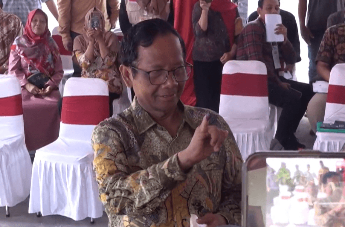Calon wakil presiden (cawapres), Mahfud MD menunjukkan tanda hasil pencoblosan. (Tangkap layar Video)