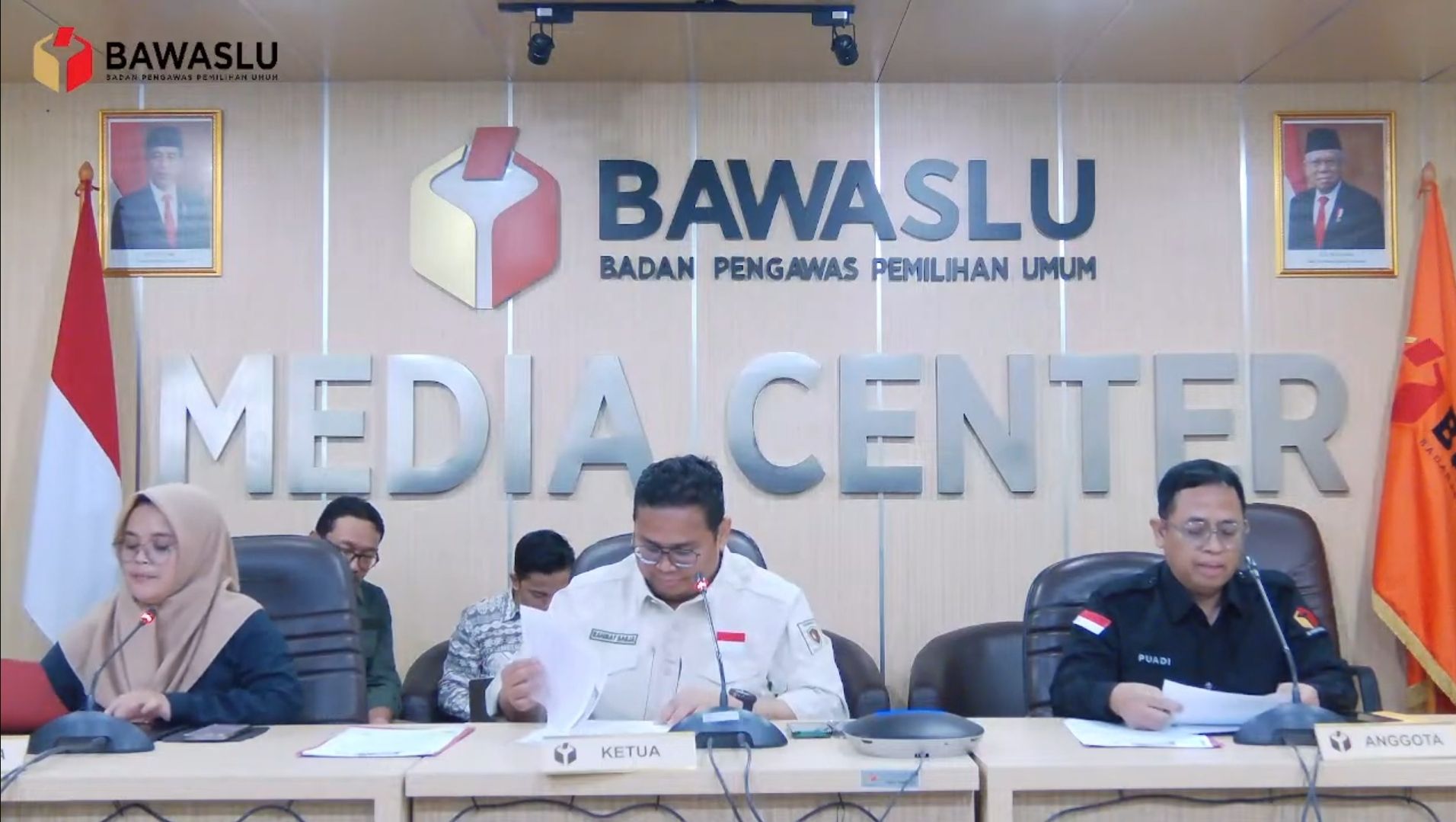 Bawaslu RI tengah menggelar konferensi pers soal temuan permasalahan pemungutan suara pemilu, Kamis (15/2/2024).