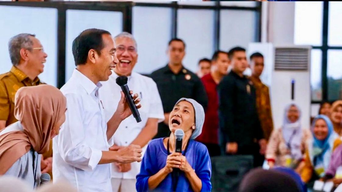Sebelum membagikan bantuan bahan pangan secara simbolis, Jokowi menyapa ratusan warga penerima manfaat bantuan yang hadir.