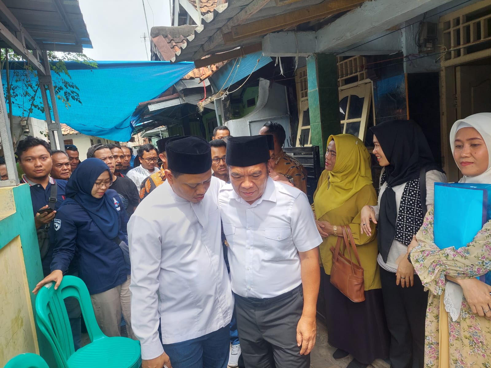Pj Gubernur Banten Al Muktabar saat di rumah duka menyalurkan santunan
