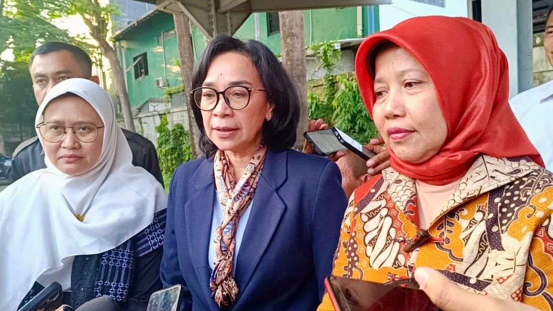 Irjen Kemendikbudristek Chatarina Muliana Girsang (Tengah) Saat Ditemui di Area Pintu Keluar Binus International School Serpong Utara, Senin (26/2/2024).