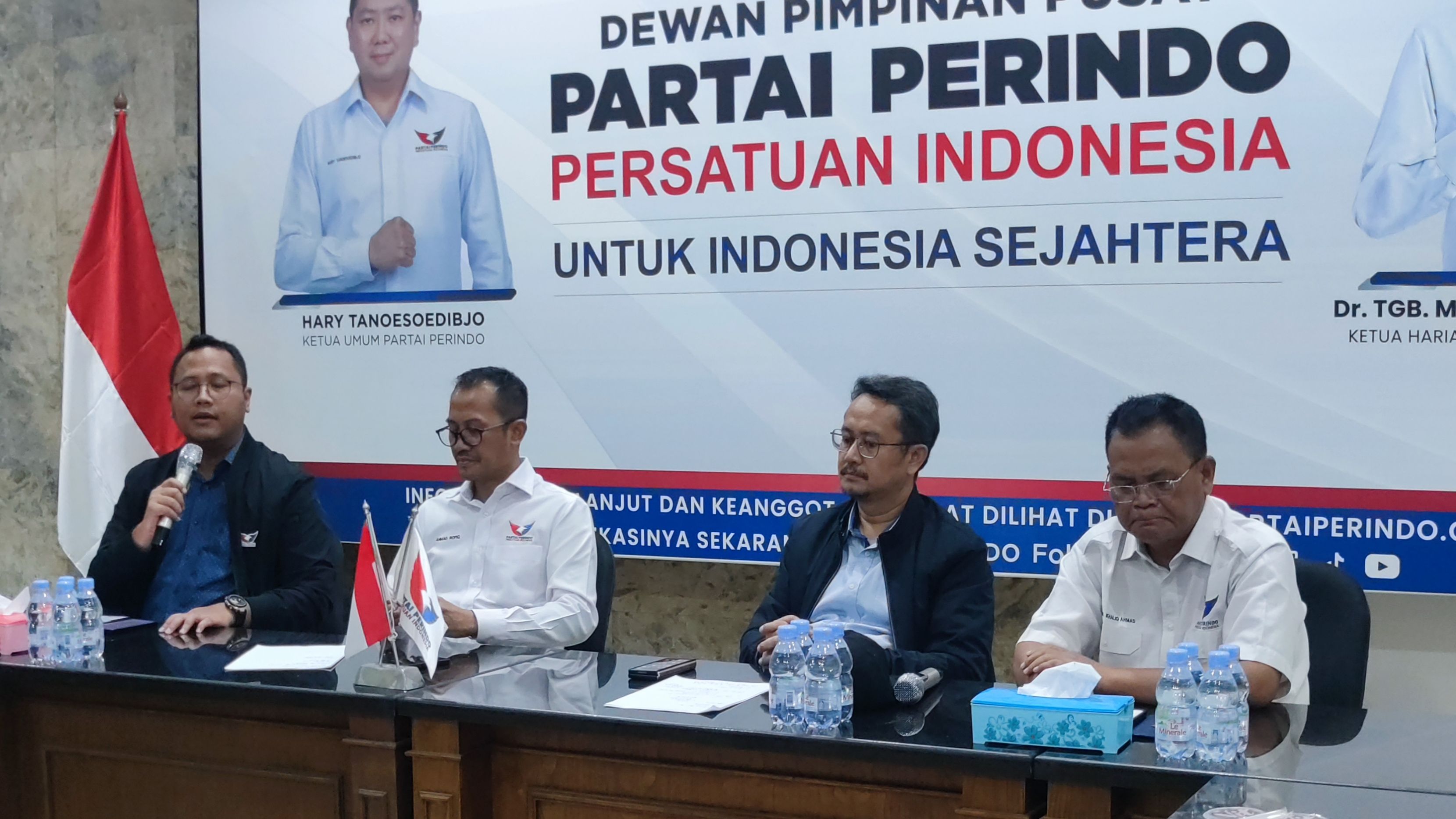 Konferensi pers di DPP Partai Perindo soal kecurangan dan keganjilan Sirekap KPU RI dalam Pemilu 2024. Foto M Julnis Firmansyah