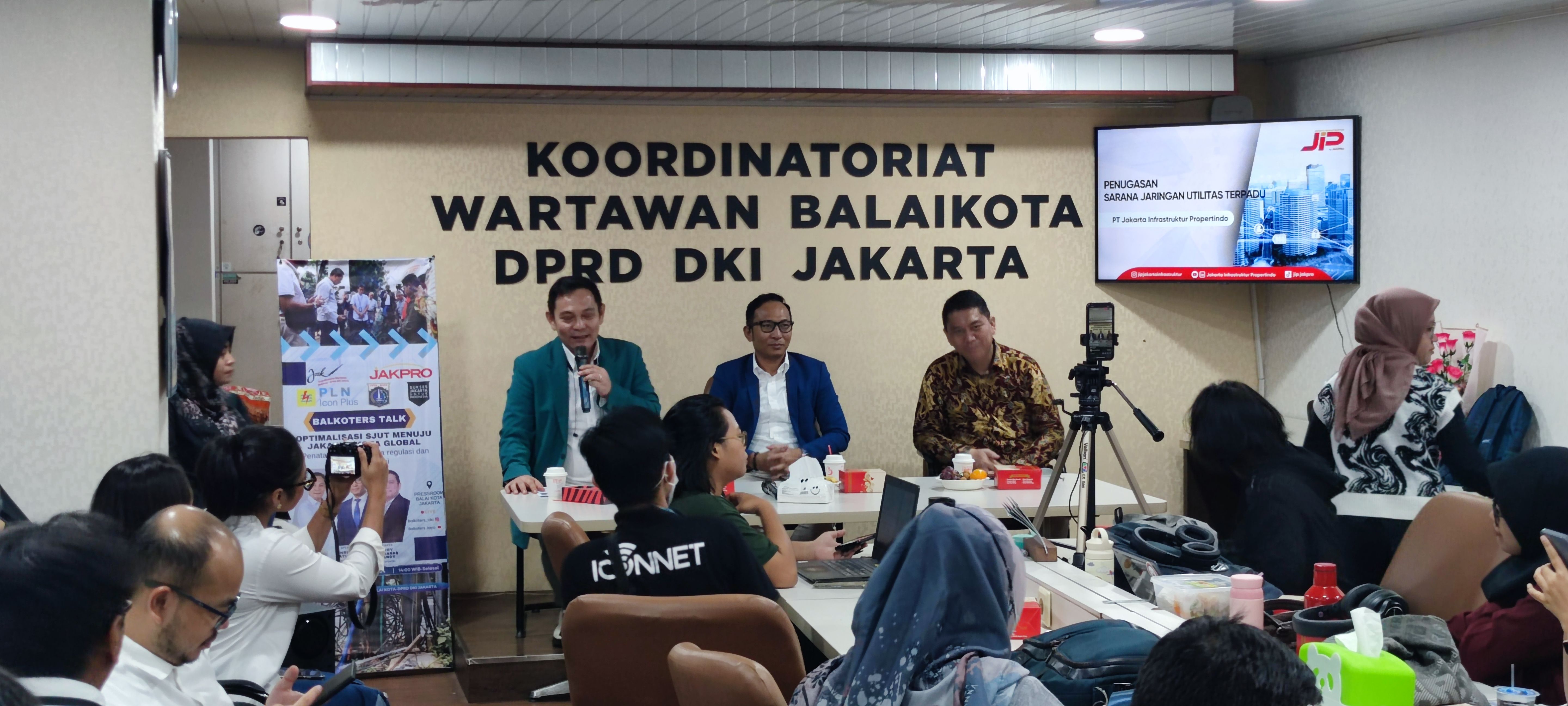 diskusi Balkoters Talk bertajuk Optimalisasi SJUT Menuju Jakarta Kota Global yang digelar di Ruang Wartawan Bengkel Jurnalistik, Balai Kota, DKI Jakarta Pusat. Foto M Julnis Firmansyah