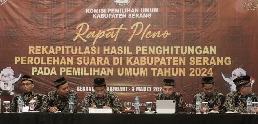 KPU Kabupaten Serang saat menggelar pleno rekapitulasi perolehan suara Pemilu 2024