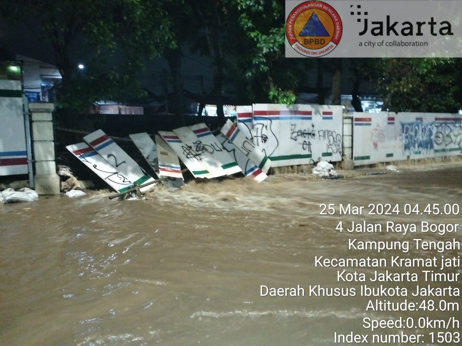 • Kelurahan Cililitan - Jumlah: 1 RT - Ketinggian: 115 cm - Penyebab: Luapan Kali Ciliwung