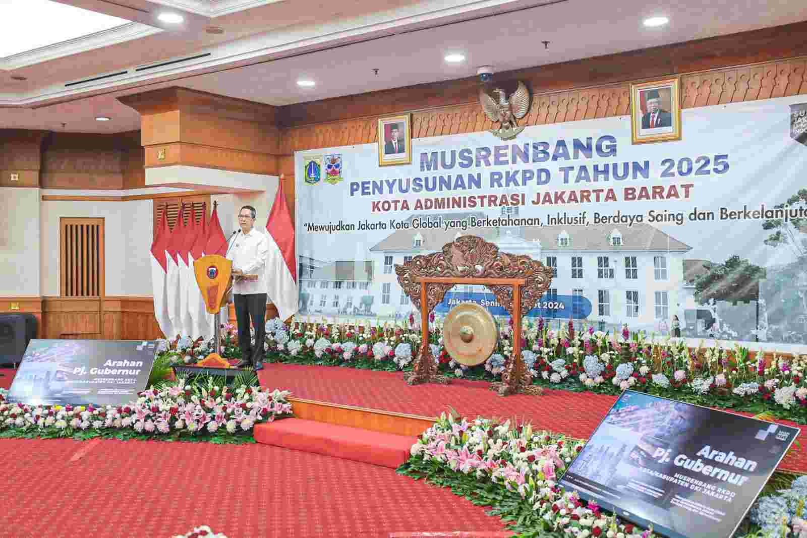 Jakarta, tvrijakartanews - Penjabat (Pj) Gubernur DKI Jakarta Heru Budi Hartono membuka secara resmi Musyawarah Perencanaan Pembangunan (Musrenbang) Tahun 2024 Kota Administrasi Jakarta Barat untuk membahas Rencana Kerja Perangkat Daerah (RKPD) Tahun 2025, di Kantor Wali Kota Administrasi Jakarta Barat, Senin (25/3).