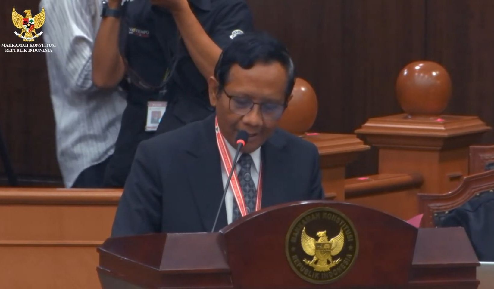 Calon Wakil Presiden Nomor Urut 3, Mahfud MD, di ruang sidang Mahkamah Konstitusi (dok. YouTube Mahkamah Konstitusi)