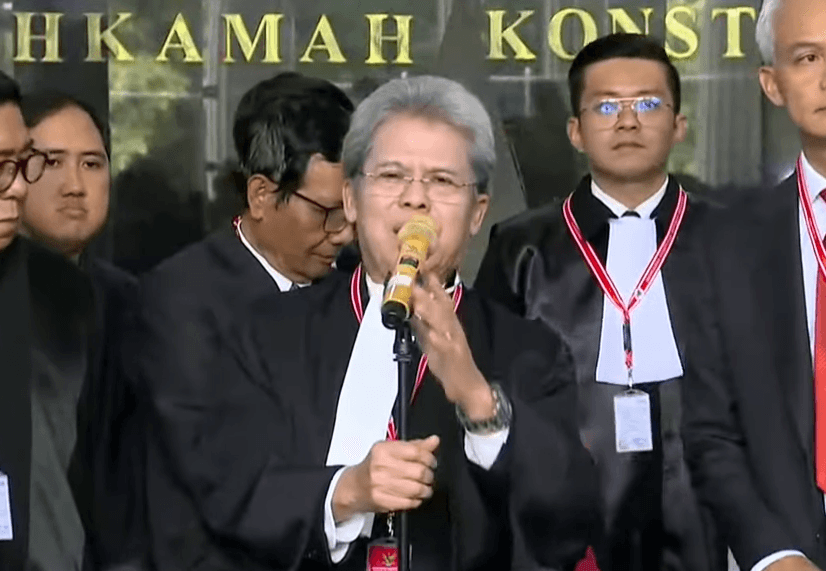 Kepala Tim Hukum Ganjar-Mahfud, Todung Mulya Lubis di Mahkamah Konstitusi (MK).
