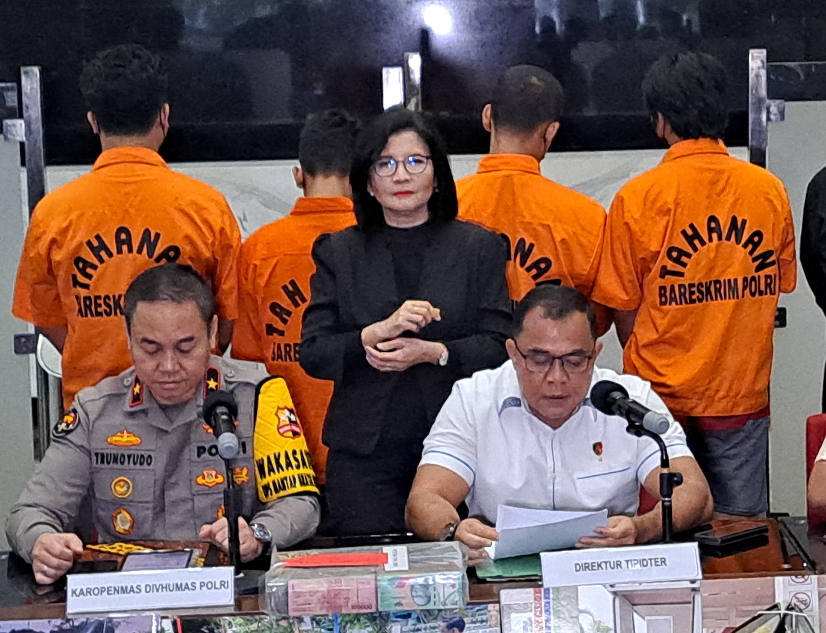 Direktur Tipidter Bareskrim Polri Brigjen Pol Nunung Syaifuddin saat memberikan keterangan didampingi Karo Penmas Divisi Humas Polri Brigjen Pol Trunoyudo Wisnu Andiko