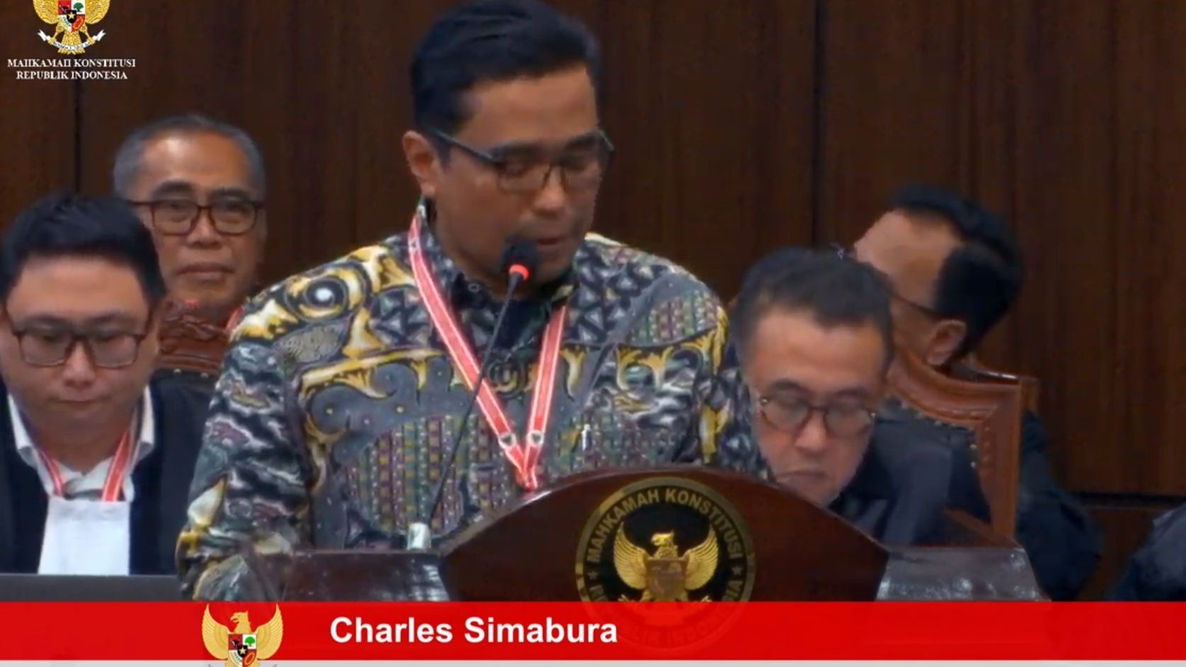 Ahli Charles Simabura saat dihadirkan kubu Ganjar-Mahfud di MK. Foto YouTube MK
