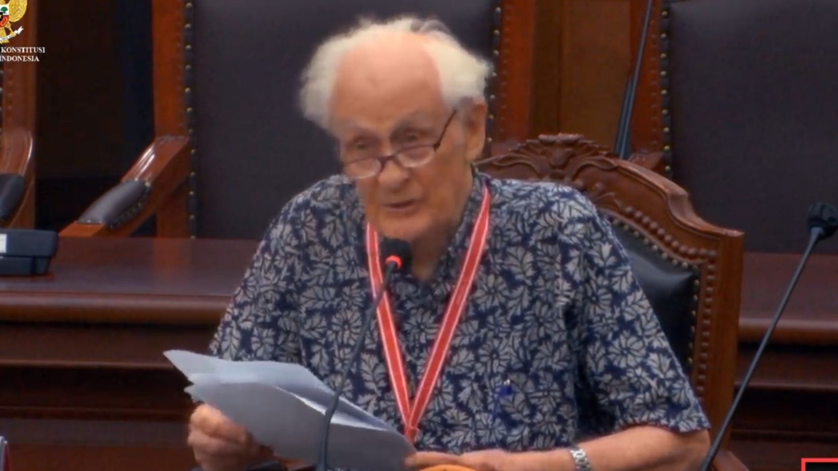 Franz Magnis Suseno alias Romo Magnis saat menjadi saksi ahli yang dihadirkan kubu Ganjar-Mahfud di sidang MK. Foto YouTube MK