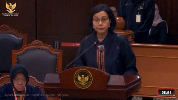 Menteri Keuangan Sri Mulyani Indrawati dalam sidang sengketa Pilpres 2024 di Mahkamah Konstitusi. Foto YouTube MK