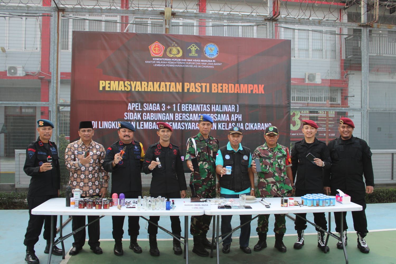 “Kegiatan apel siaga dan razia serentak blok hunian bersama Aparat Penegak Hukum di Lapas Kelas IIA Cikarang berjalan dengan aman dan kondusif,” imbuhnya.