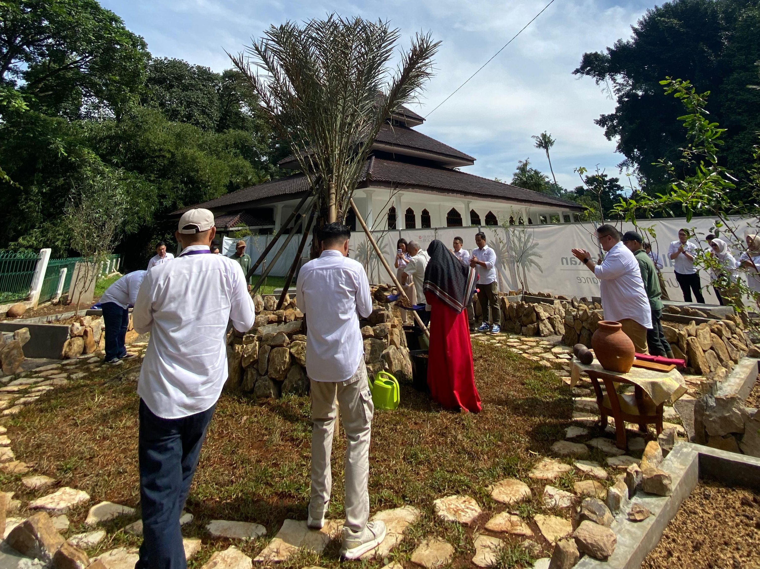 “Ada lima jenis tumbuhan utama yang paling banyak disebut dalam Qur’an yang kami tanam di area utama, kelima jenis ini menandakan lima waktu sholat dan jumlah 17 pohon yang menandakan jumlah raka’at,” tandasnya