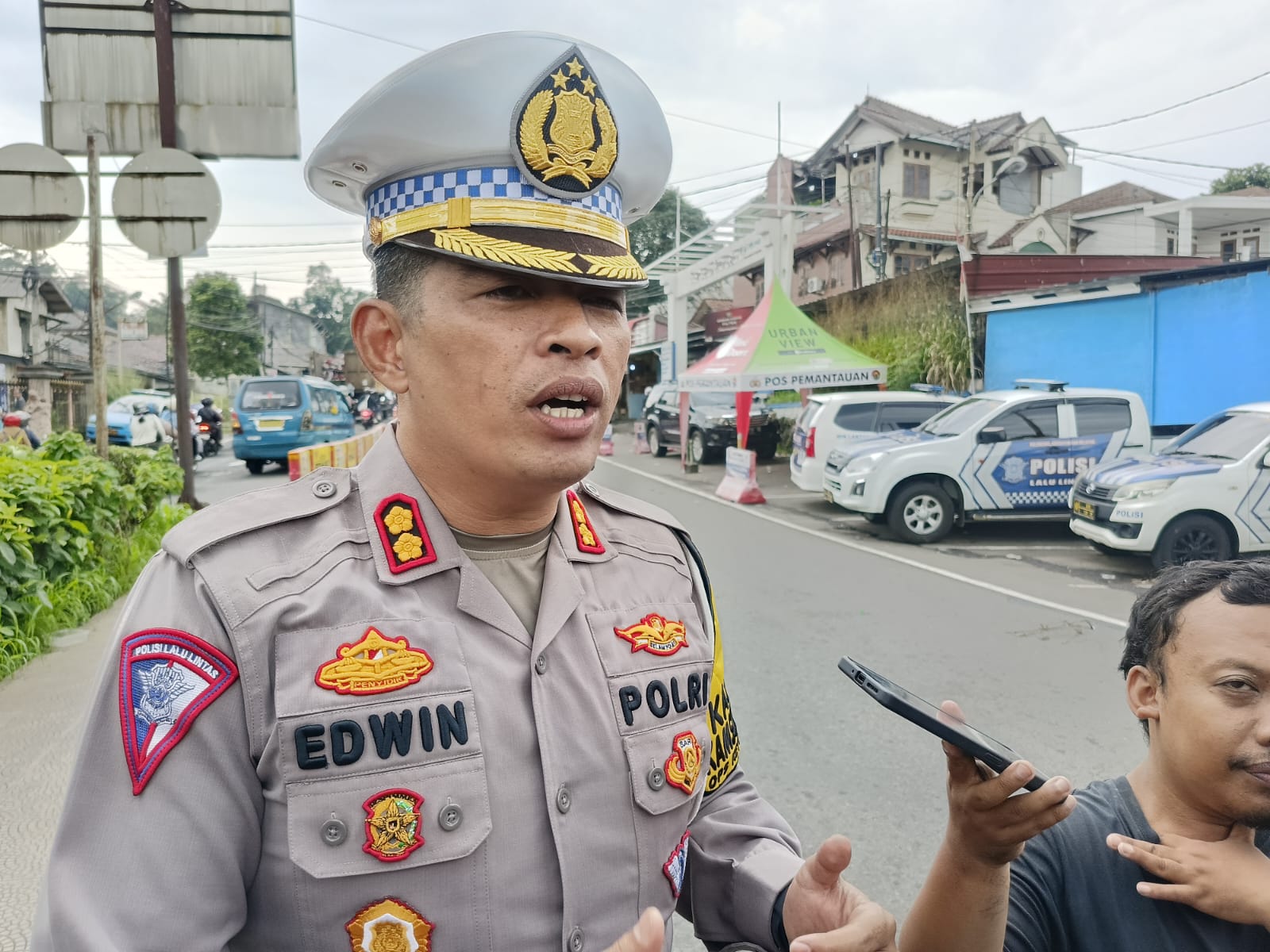 Wadir Lantas Poda Jawa Barat (Jabar), AKBP Edwin Afandi meninjau langsung pos pengamanan terpadu di Simpang Gadog, Kabupaten Bogor, Jawa Barat, pada Jumat 12 April 2024 / Foto: Dimas Yuga Pratama
