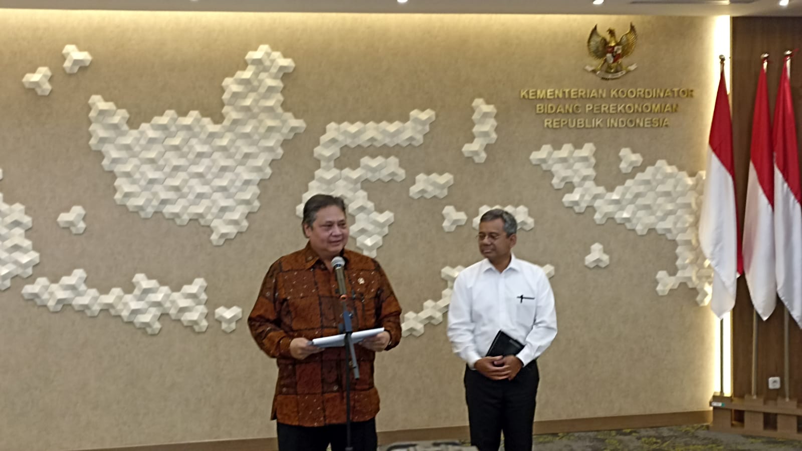 Menteri Koordinator Bidang Perekonomian Airlangga Hartarto menggelar konferensi pers di Gedung Kemenko Bidang Perekonomian. (Tvrijakarta/ John Abimanyu)