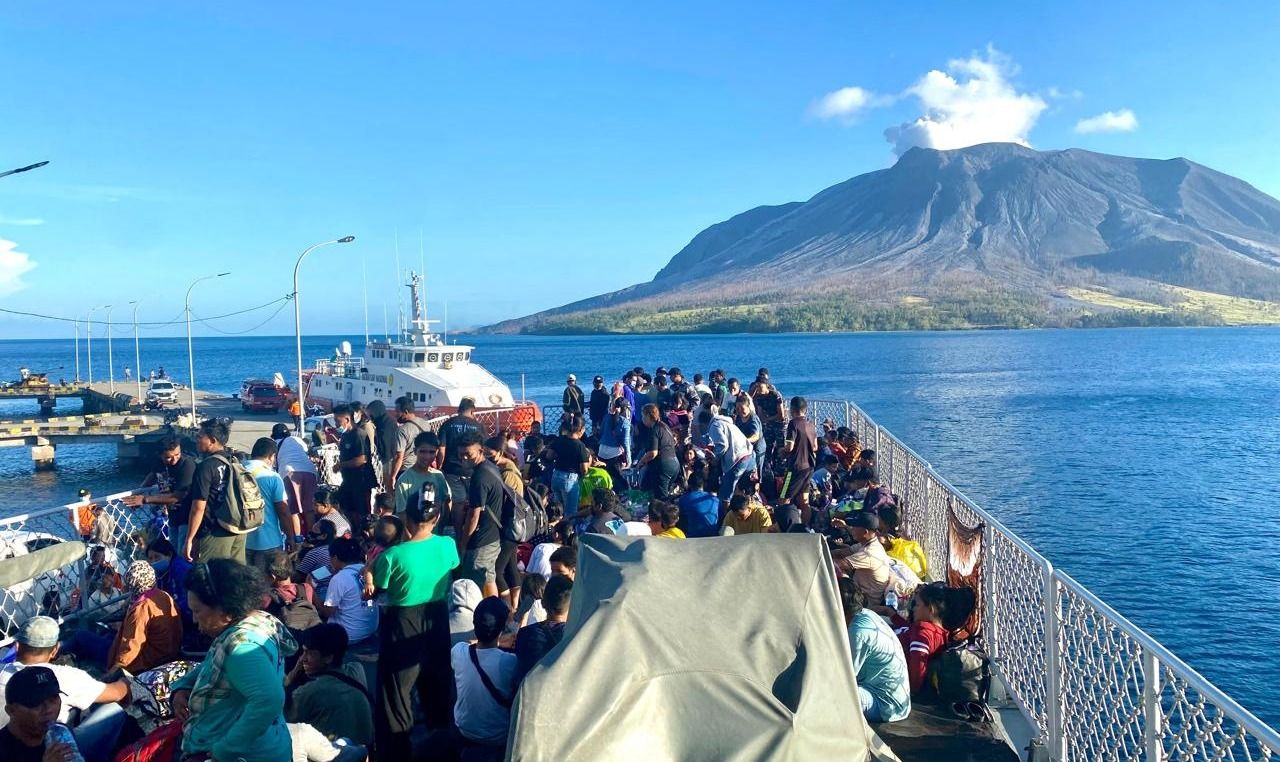 Satgas Gabungan evakuasi warga terdampak Erupsi Gunungapi Ruang. ( Humas BNPB)