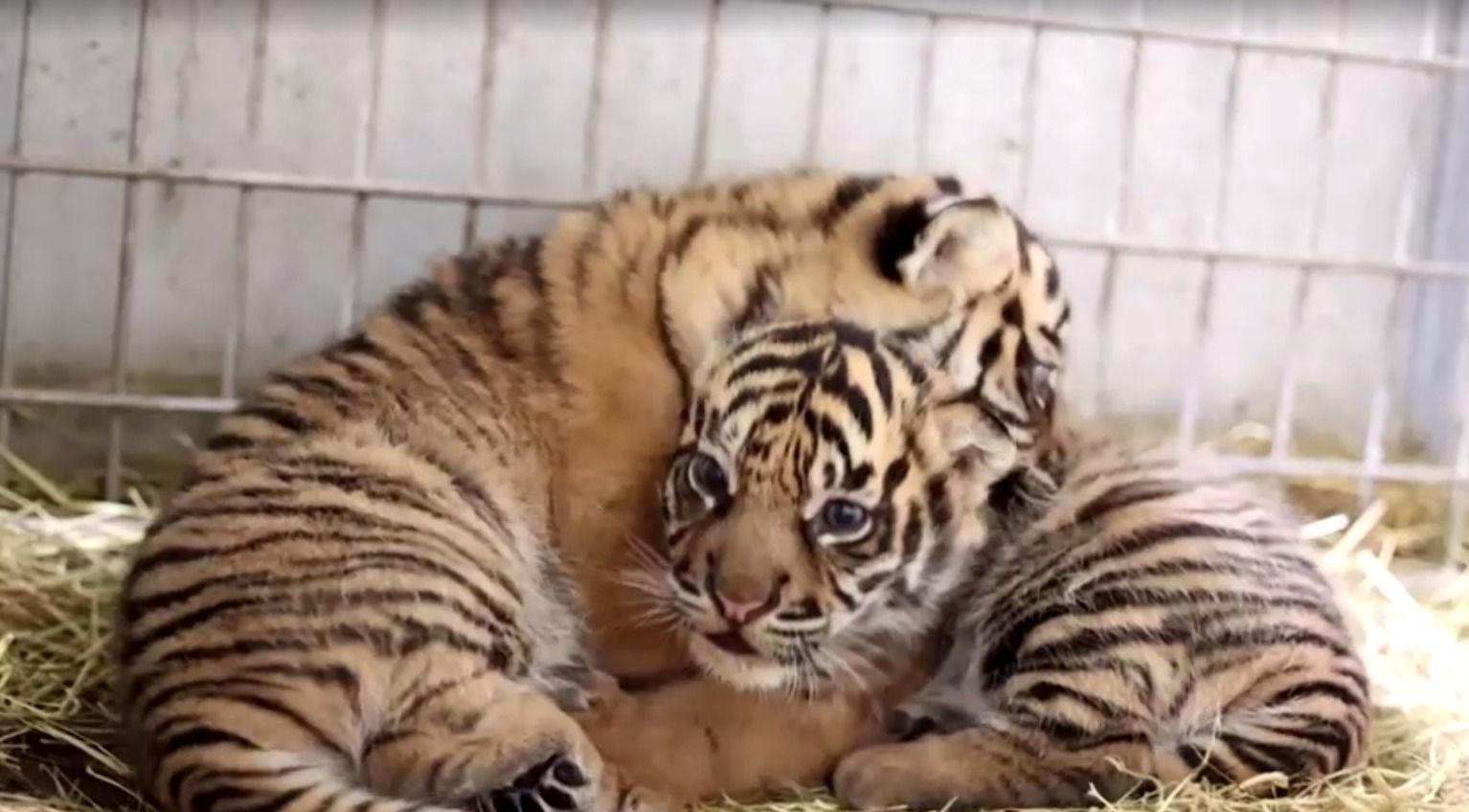 Jakarta, tvrijakartanews - Kebun Binatang Amiens Metropolo di Perancis Utara menyambut dua anak harimau sumatera bernama Rumba dan Toba. Mereka dilahirkan pada tanggal 22 Maret sebagai hasil Program Pemuliaan Harimau Sumatera Eropa. Mereka merupakan keturunan kedua Harimau Menya betina yang dikawinkan dengan Argo jantan. Pada usia satu bulan, berat anaknya sekitar 4,2 kilogram (9,25 pon).