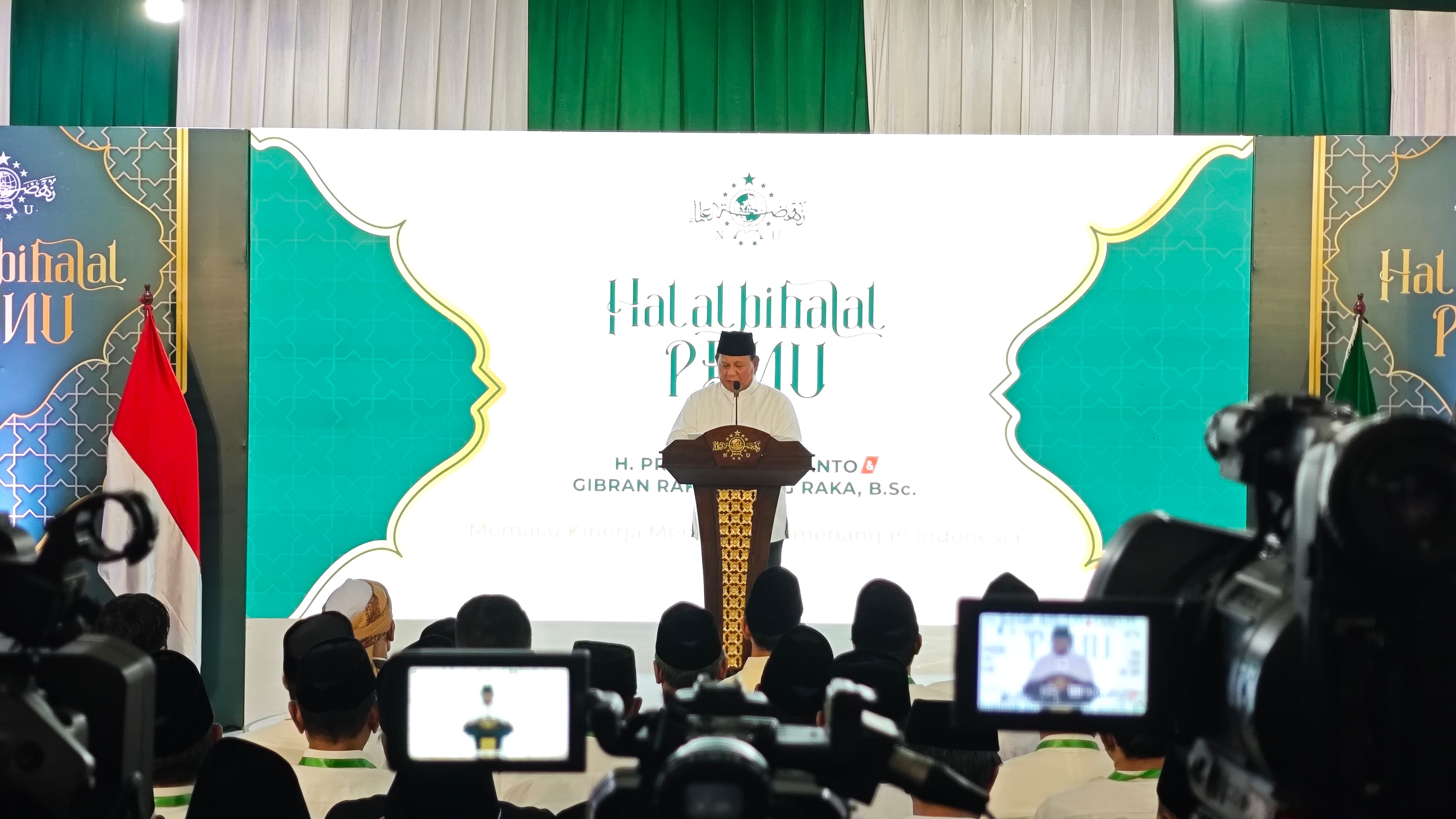 Prabowo Subianto saat hadir dalam acara halalbihalal PBNU. Foto M Julnis Firmansyah