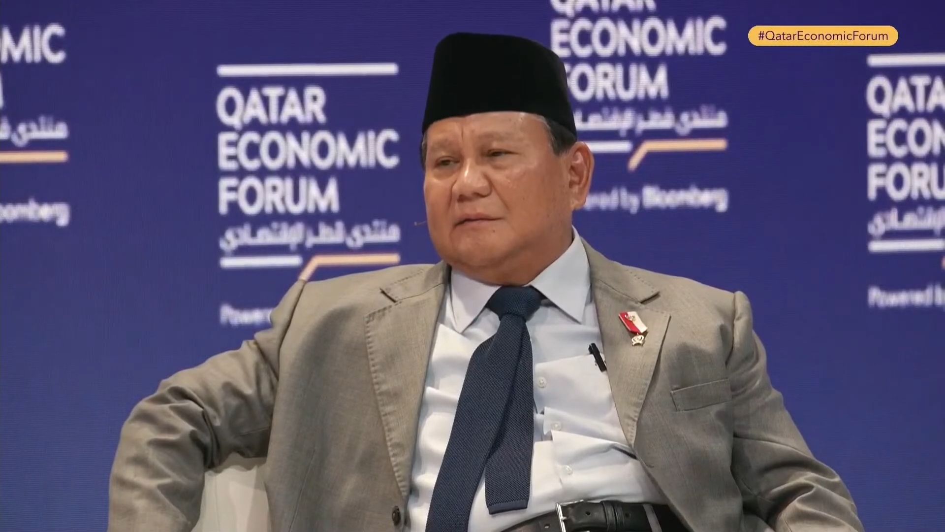 Presiden terpilih Prabowo Subianto saat menjadi pembicara di Qatar Economic Forum 2024. Foto Istimewa