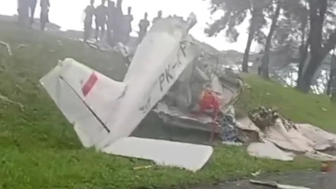 Pesawat latih yang jatuh di kawasan BSD, Tangerang. Foto Istimewa