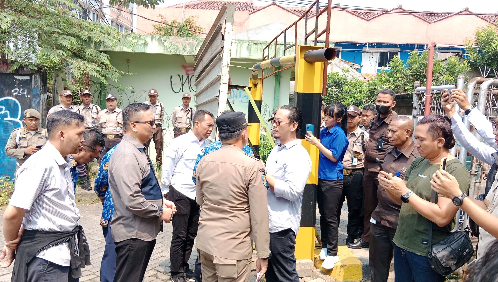 Proses pembukaan jalan akses warga menuju Pasar Jambu Dua yang sempat ditutup pihak pengelola mal, Senin 20 Mei 2024 / Foto: Dimas Yuga Pratama