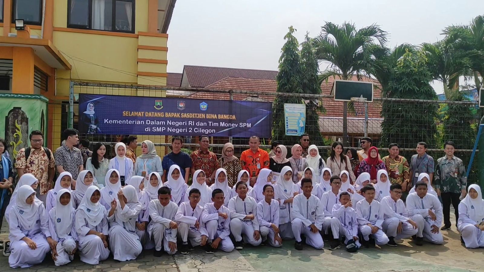 Kemendagri Foto Bareng Bersama Siswa Saat Monitoring SPM Di SMP Negeri 2 Kota Cilegon