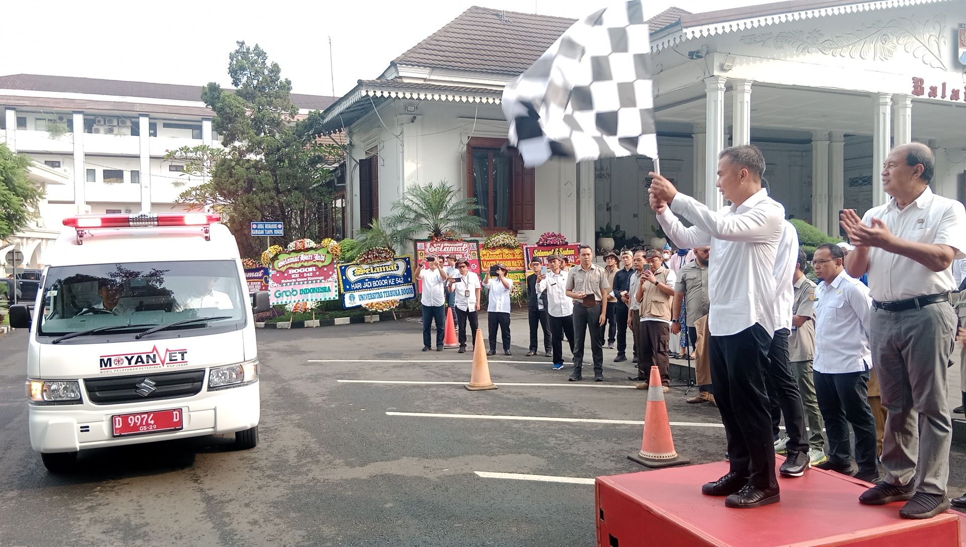 Pj Gubernur Jawa Barat melepas sekitar 5.000 tim kesehatan hewan kurban di Halaman Balaikota Bogor, Bogor Tengah, Kota Bogor, Jawa Barat, pada Senin 3 Juni 2024 / Foto: Dimas Yuga Pratama