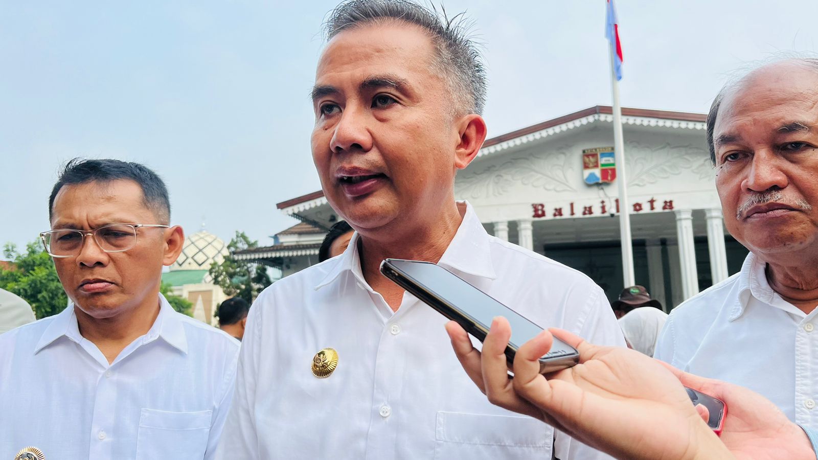 Pj Gubernur Jawa Barat, Bey Machmudin saat memberikan keterangan pers usai melepas tim kesehatan hewan kurban di halaman Balaikota Bogor, Senin 3 Juni 2024 / Foto: Dimas Yuga Pratama