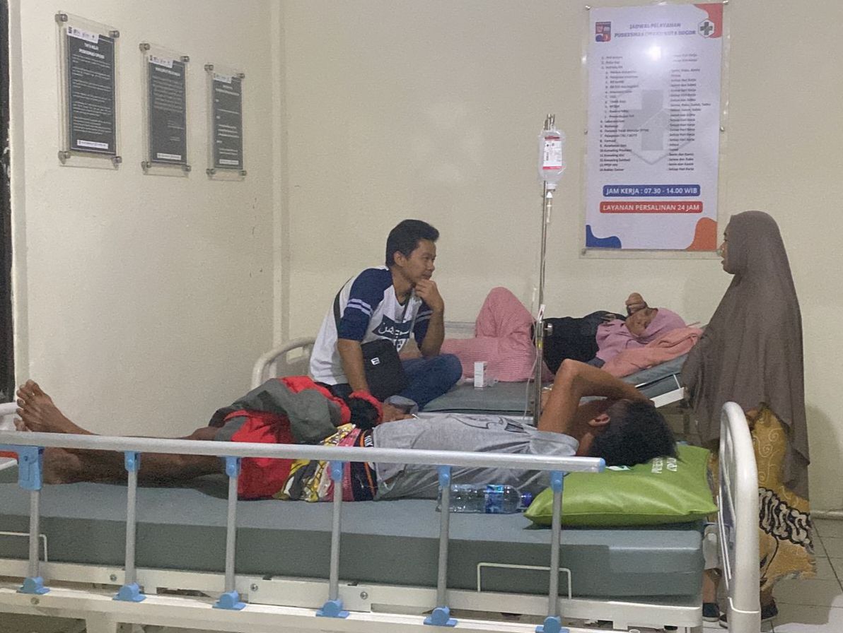Sejumlah pasien korban dugaan keracunan massal di Bogor tengah mendapatkan perawatan medis di Puskesmas Cipaku, Bogor Selatan, Kota Bogor, Senin 3 Juni 2024 malam / Foto: Dimas Yuga Pratama