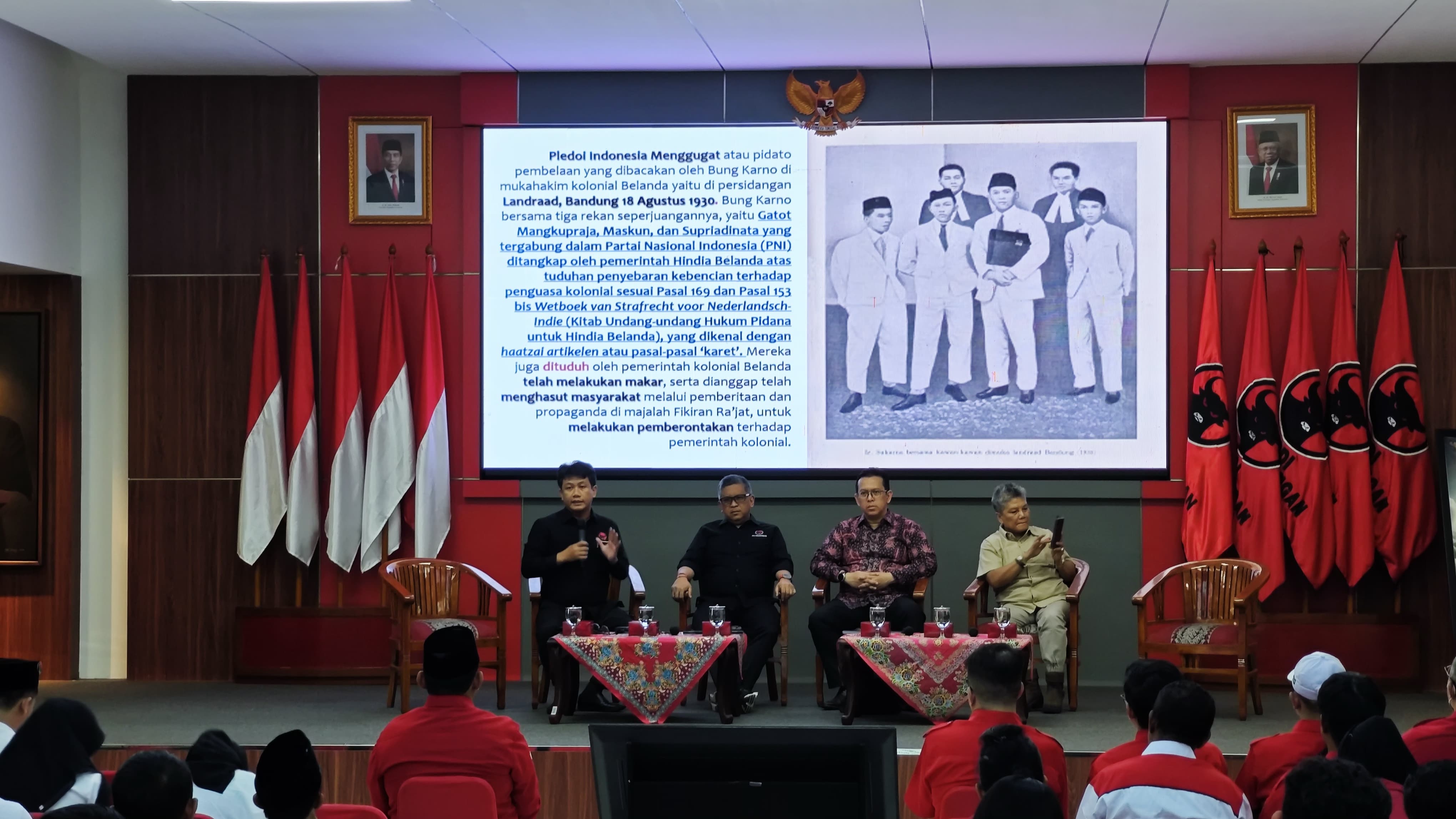 Diskusi peringatan Hari Lahir Bung Karno di Sekolah Partai PDI Perjuangan, Lenteng Agung, Jakarta Selatan, Kamis, 6 Juni 2024. Foto M Julnis Firmansyah