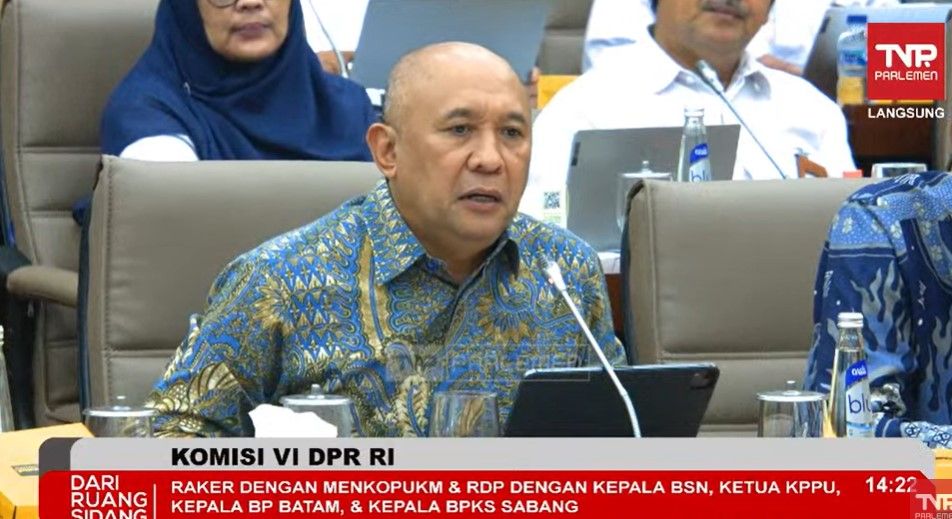 Menteri Koperasi dan Usaha Kecil Menengah (MenkopUKM) Teten Masduki rapat kerja bersama Komisi VI DPR RI. (Tangkap layar YouTube TV Parlemen)